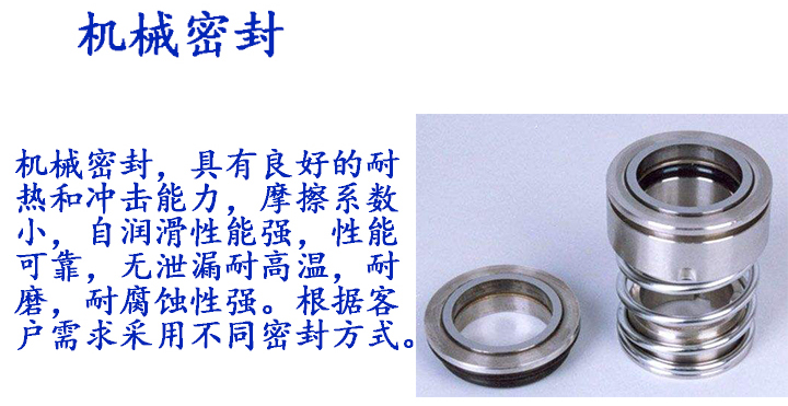 3.硬质合金机械密封具有良好的耐热和受冲击能力,摩擦系数小,自润滑性能强,无泄漏耐高温。