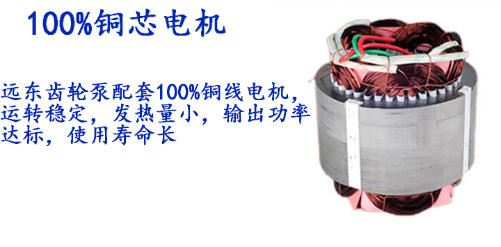 5.天津远东齿轮泵配套100%铜线电机,运转稳定,发热量小,输出功率达标,使用寿命长。